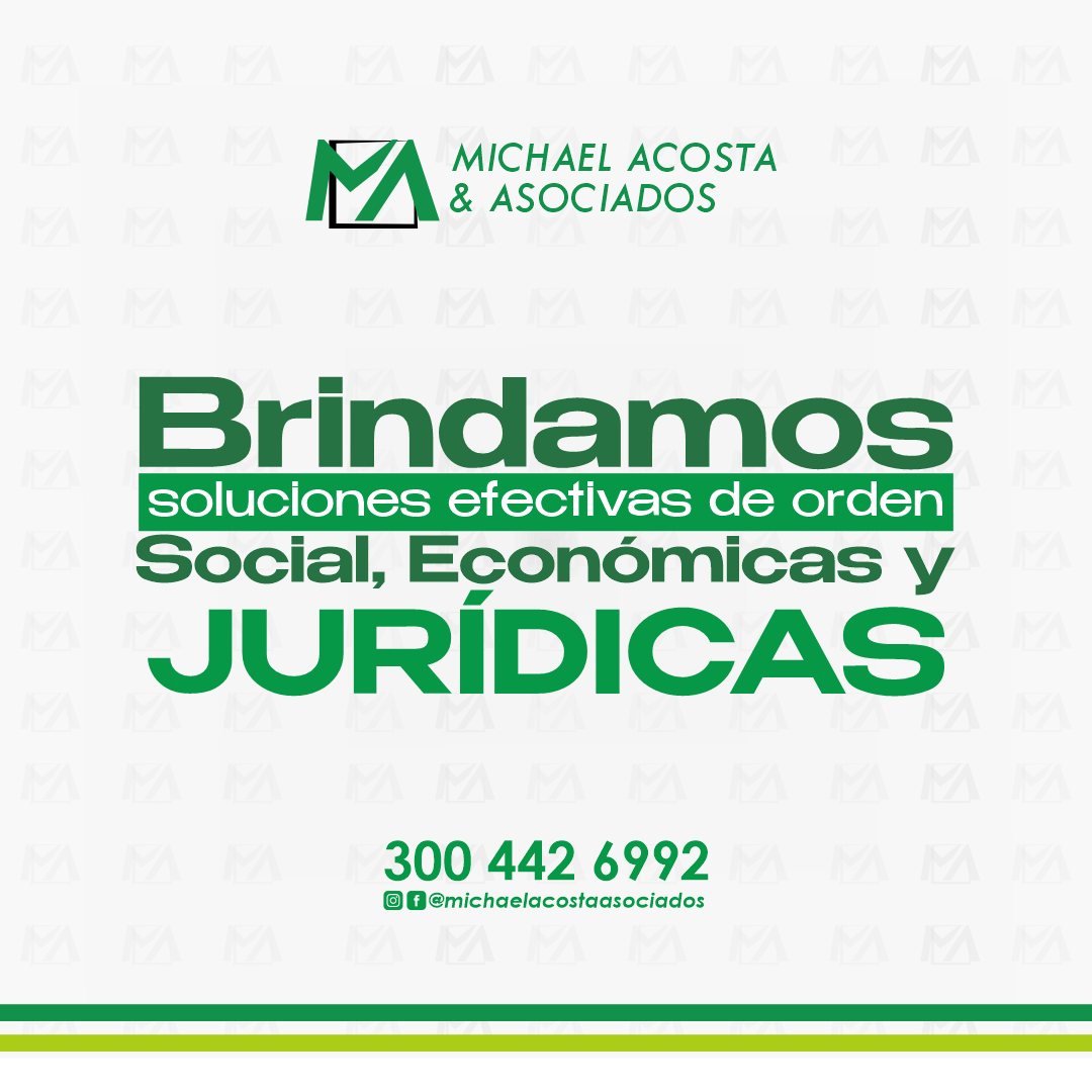 Fundada en 2020 en Montería, Córdoba, Michael Acosta & Asociados se destaca por su enfoque colaborativo, ofreciendo asesorías jurídicas, económicas y sociales. A través de ideas innovadoras, buscamos marcar la diferencia en el sector, con un equipo comprometido a brindar soluciones efectivas.
